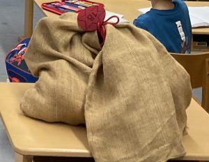 Nikolaus hat allen Klassen einen toll gefüllten Nikolaussack gebracht mit Äpfeln, Mandarinen und Lebkuchen.